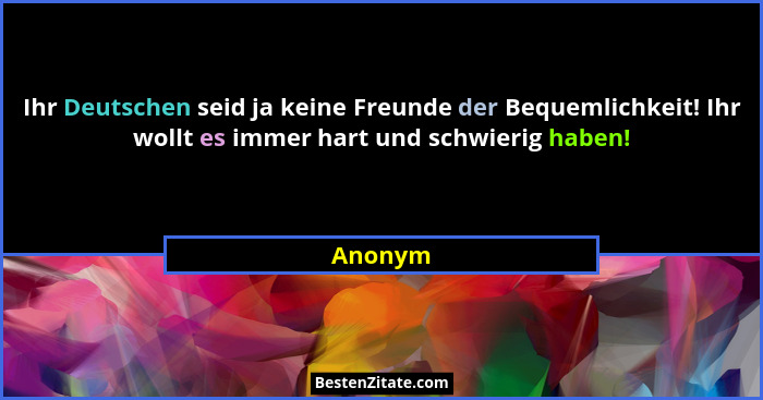 Ihr Deutschen seid ja keine Freunde der Bequemlichkeit! Ihr wollt es immer hart und schwierig haben!