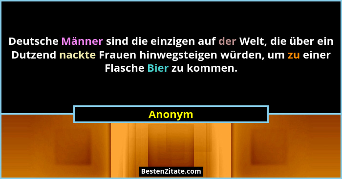 Deutsche Männer sind die einzigen auf der Welt, die über ein Dutzend nackte Frauen hinwegsteigen würden, um zu einer Flasche Bier zu kommen.