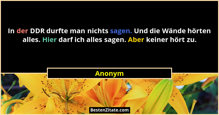 In der DDR durfte man nichts sagen. Und die Wände hörten alles. Hier darf ich alles sagen. Aber keiner hört zu.