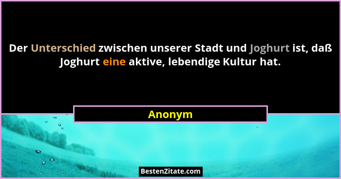 Der Unterschied zwischen unserer Stadt und Joghurt ist, daß Joghurt eine aktive, lebendige Kultur hat.