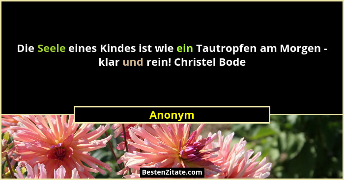 Die Seele eines Kindes ist wie ein Tautropfen am Morgen - klar und rein! Christel Bode