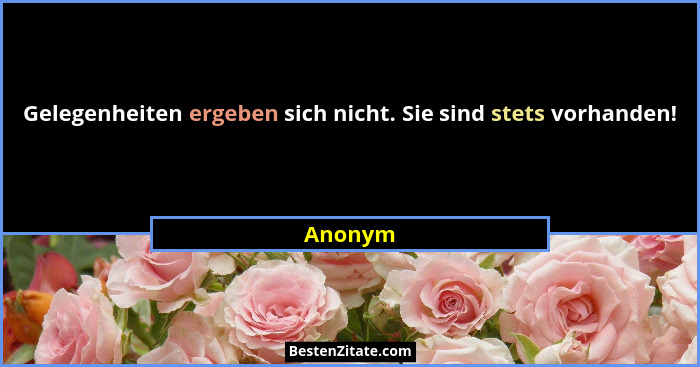 Gelegenheiten ergeben sich nicht. Sie sind stets vorhanden!