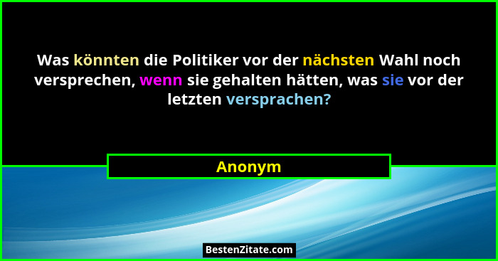 Was könnten die Politiker vor der nächsten Wahl noch versprechen, wenn sie gehalten hätten, was sie vor der letzten versprachen?
