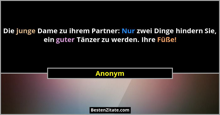 Die junge Dame zu ihrem Partner: Nur zwei Dinge hindern Sie, ein guter Tänzer zu werden. Ihre Füße!