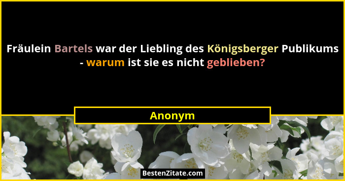 Fräulein Bartels war der Liebling des Königsberger Publikums - warum ist sie es nicht geblieben?