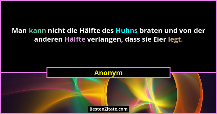 Man kann nicht die Hälfte des Huhns braten und von der anderen Hälfte verlangen, dass sie Eier legt.