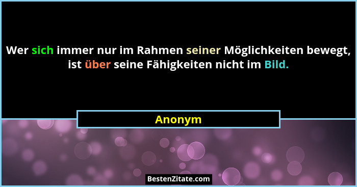 Wer sich immer nur im Rahmen seiner Möglichkeiten bewegt, ist über seine Fähigkeiten nicht im Bild.