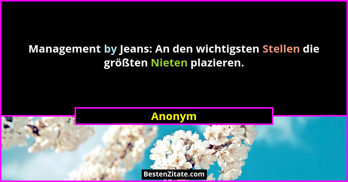 Management by Jeans: An den wichtigsten Stellen die größten Nieten plazieren.