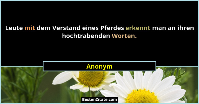 Leute mit dem Verstand eines Pferdes erkennt man an ihren hochtrabenden Worten.