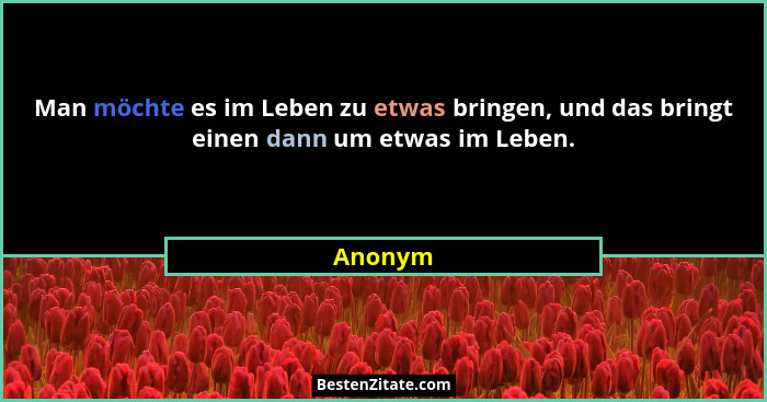 Man möchte es im Leben zu etwas bringen, und das bringt einen dann um etwas im Leben.