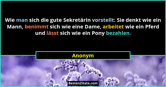 Wie man sich die gute Sekretärin vorstellt: Sie denkt wie ein Mann, benimmt sich wie eine Dame, arbeitet wie ein Pferd und lässt sich wie ein Pony bezahlen.