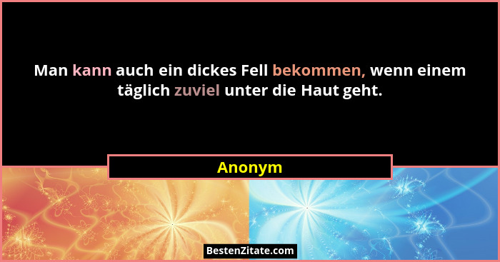 Man kann auch ein dickes Fell bekommen, wenn einem täglich zuviel unter die Haut geht.