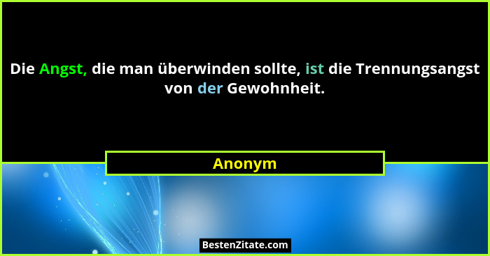 Die Angst, die man überwinden sollte, ist die Trennungsangst von der Gewohnheit.