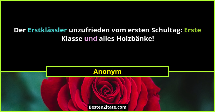 Der Erstklässler unzufrieden vom ersten Schultag: Erste Klasse und alles Holzbänke!