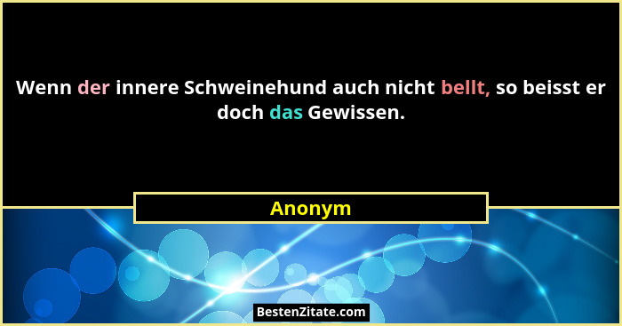Wenn der innere Schweinehund auch nicht bellt, so beisst er doch das Gewissen.