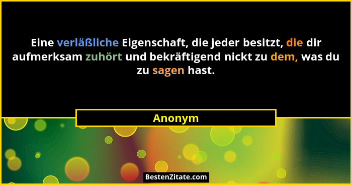 Eine verläßliche Eigenschaft, die jeder besitzt, die dir aufmerksam zuhört und bekräftigend nickt zu dem, was du zu sagen hast.