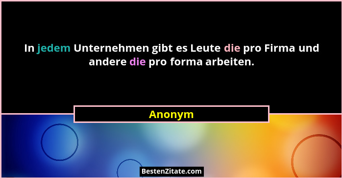 In jedem Unternehmen gibt es Leute die pro Firma und andere die pro forma arbeiten.