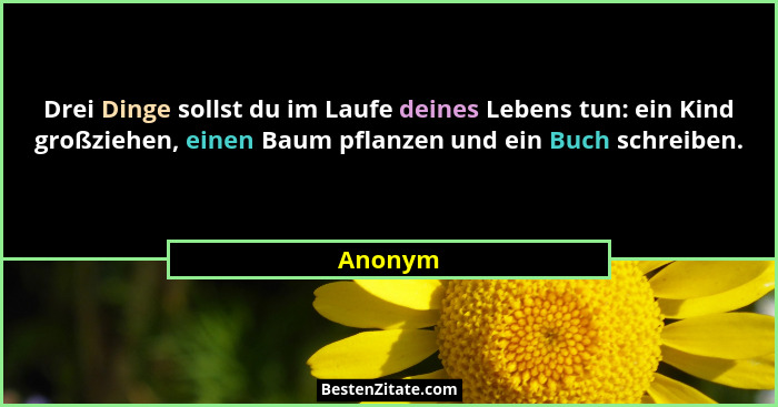 Drei Dinge sollst du im Laufe deines Lebens tun: ein Kind großziehen, einen Baum pflanzen und ein Buch schreiben.