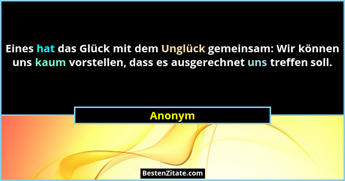 Eines hat das Glück mit dem Unglück gemeinsam: Wir können uns kaum vorstellen, dass es ausgerechnet uns treffen soll.