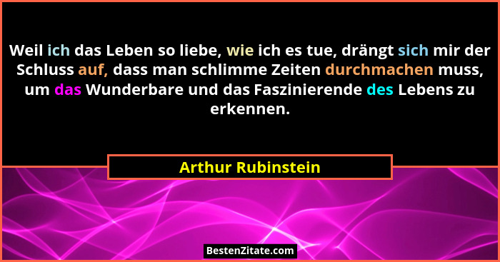 Weil ich das Leben so liebe, wie ich es tue, drängt sich mir der Schluss auf, dass man schlimme Zeiten durchmachen muss, um das Wunderbare und das Faszinierende des Lebens zu erkennen.