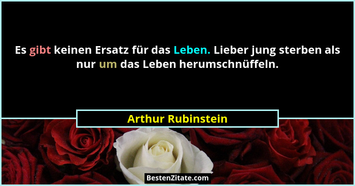 Es gibt keinen Ersatz für das Leben. Lieber jung sterben als nur um das Leben herumschnüffeln.