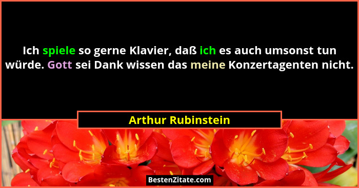 Ich spiele so gerne Klavier, daß ich es auch umsonst tun würde. Gott sei Dank wissen das meine Konzertagenten nicht.