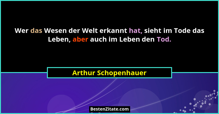 Wer das Wesen der Welt erkannt hat, sieht im Tode das Leben, aber auch im Leben den Tod.