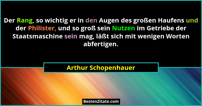 Der Rang, so wichtig er in den Augen des großen Haufens und der Philister, und so groß sein Nutzen im Getriebe der Staatsmaschine sein mag, läßt sich mit wenigen Worten abfertigen.