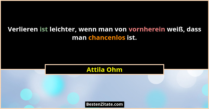 Verlieren ist leichter, wenn man von vornherein weiß, dass man chancenlos ist.