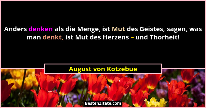 Anders denken als die Menge, ist Mut des Geistes, sagen, was man denkt, ist Mut des Herzens – und Thorheit!