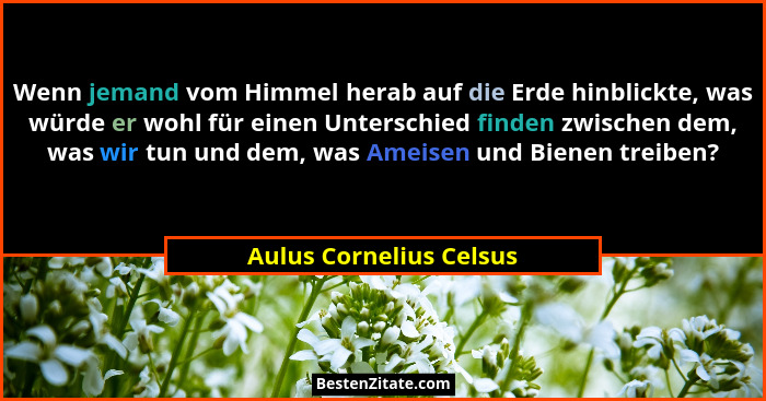 Wenn jemand vom Himmel herab auf die Erde hinblickte, was würde er wohl für einen Unterschied finden zwischen dem, was wir tun und dem, was Ameisen und Bienen treiben?