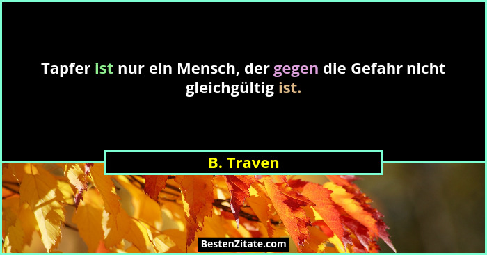 Tapfer ist nur ein Mensch, der gegen die Gefahr nicht gleichgültig ist.