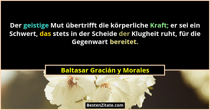 Der geistige Mut übertrifft die körperliche Kraft; er sei ein Schwert, das stets in der Scheide der Klugheit ruht, für die Gegenwart bereitet.