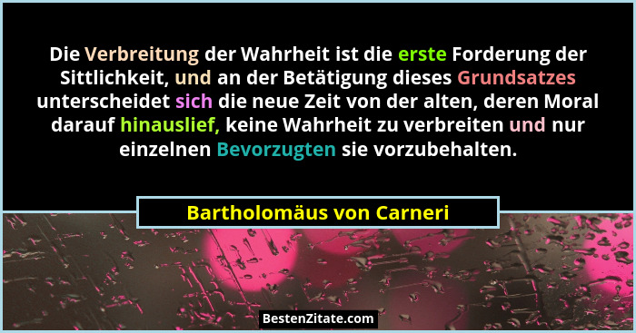 Die Verbreitung der Wahrheit ist die erste Forderung der Sittlichkeit, und an der Betätigung dieses Grundsatzes unterscheidet sich die neue Zeit von der alten, deren Moral darauf hinauslief, keine Wahrheit zu verbreiten und nur einzelnen Bevorzugten sie vorzubehalten.