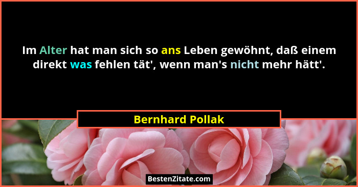 Im Alter hat man sich so ans Leben gewöhnt, daß einem direkt was fehlen tät', wenn man's nicht mehr hätt'.