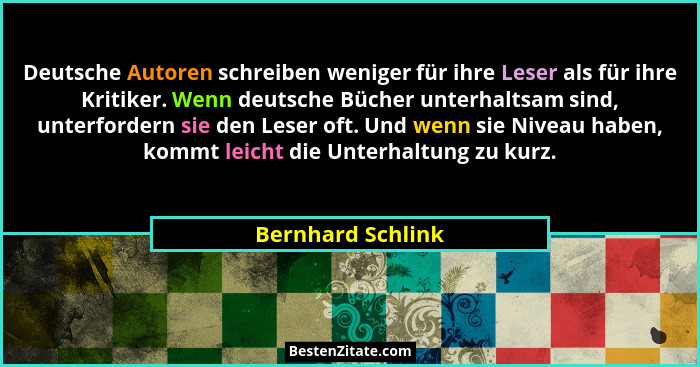 Deutsche Autoren schreiben weniger für ihre Leser als für ihre Kritiker. Wenn deutsche Bücher unterhaltsam sind, unterfordern sie den Leser oft. Und wenn sie Niveau haben, kommt leicht die Unterhaltung zu kurz.