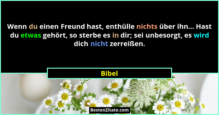 Wenn du einen Freund hast, enthülle nichts über ihn... Hast du etwas gehört, so sterbe es in dir; sei unbesorgt, es wird dich nicht zerreißen.