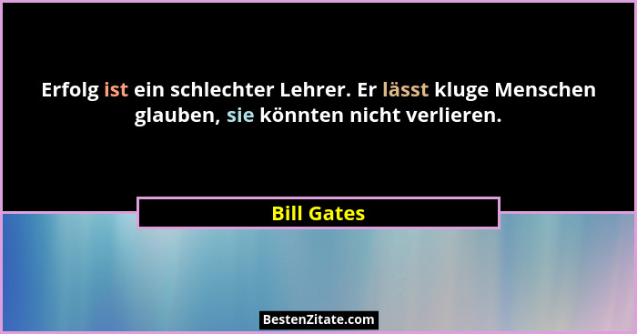 Erfolg ist ein schlechter Lehrer. Er lässt kluge Menschen glauben, sie könnten nicht verlieren.