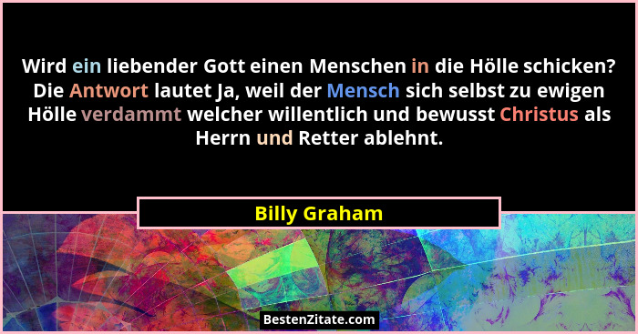 Wird ein liebender Gott einen Menschen in die Hölle schicken? Die Antwort lautet Ja, weil der Mensch sich selbst zu ewigen Hölle verdammt welcher willentlich und bewusst Christus als Herrn und Retter ablehnt.