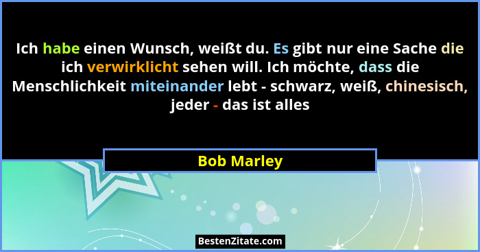 Ich habe einen Wunsch, weißt du. Es gibt nur eine Sache die ich verwirklicht sehen will. Ich möchte, dass die Menschlichkeit miteinander lebt - schwarz, weiß, chinesisch, jeder - das ist alles