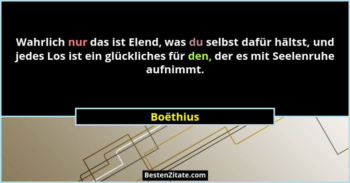 Wahrlich nur das ist Elend, was du selbst dafür hältst, und jedes Los ist ein glückliches für den, der es mit Seelenruhe aufnimmt.
