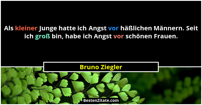 Als kleiner Junge hatte ich Angst vor häßlichen Männern. Seit ich groß bin, habe ich Angst vor schönen Frauen.