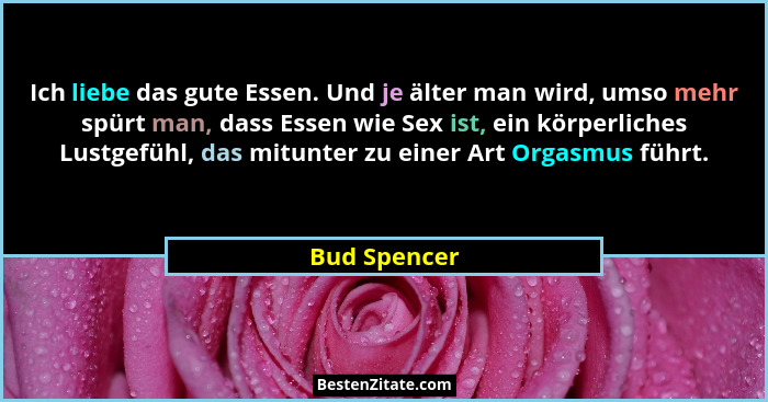 Ich liebe das gute Essen. Und je älter man wird, umso mehr spürt man, dass Essen wie Sex ist, ein körperliches Lustgefühl, das mitunter zu einer Art Orgasmus führt.