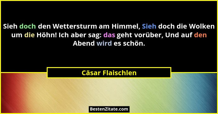 Sieh doch den Wettersturm am Himmel, Sieh doch die Wolken um die Höhn! Ich aber sag: das geht vorüber, Und auf den Abend wird es schön.