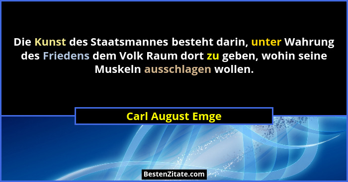 Die Kunst des Staatsmannes besteht darin, unter Wahrung des Friedens dem Volk Raum dort zu geben, wohin seine Muskeln ausschlagen wollen.