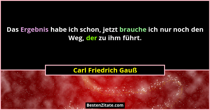 Das Ergebnis habe ich schon, jetzt brauche ich nur noch den Weg, der zu ihm führt.
