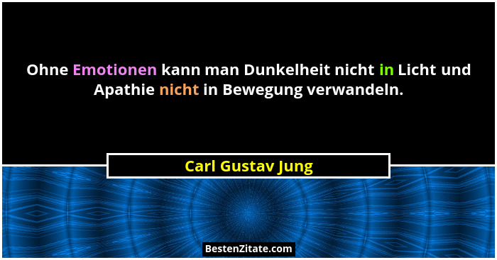 Ohne Emotionen kann man Dunkelheit nicht in Licht und Apathie nicht in Bewegung verwandeln.