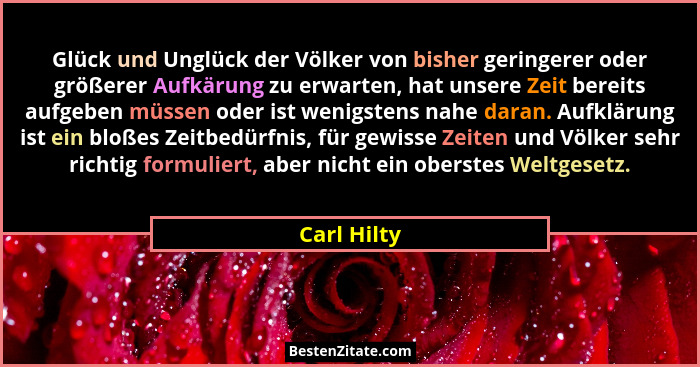 Glück und Unglück der Völker von bisher geringerer oder größerer Aufkärung zu erwarten, hat unsere Zeit bereits aufgeben müssen oder ist wenigstens nahe daran. Aufklärung ist ein bloßes Zeitbedürfnis, für gewisse Zeiten und Völker sehr richtig formuliert, aber nicht ein oberstes Weltgesetz.