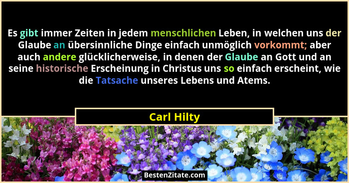 Es gibt immer Zeiten in jedem menschlichen Leben, in welchen uns der Glaube an übersinnliche Dinge einfach unmöglich vorkommt; aber auch andere glücklicherweise, in denen der Glaube an Gott und an seine historische Erscheinung in Christus uns so einfach erscheint, wie die Tatsache unseres Lebens und Atems.