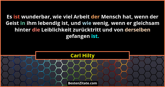 Es ist wunderbar, wie viel Arbeit der Mensch hat, wenn der Geist in ihm lebendig ist, und wie wenig, wenn er gleichsam hinter die Leiblichkeit zurücktritt und von derselben gefangen ist.
